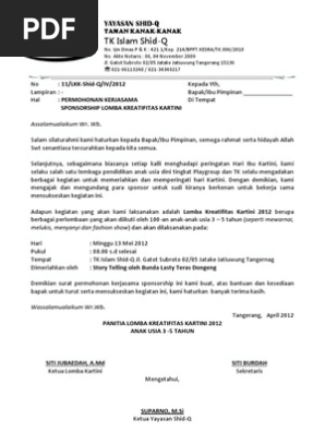 PDF Proposal Lomba Kaligrafi Narsim MPar - Academiaedu. Menawarkan kerjasama dalam acara lomba tersebut di atas. Admin Berbagi Contoh Proposal 2019 juga mengumpulkan gambar-gambar lainnya terkait contoh proposal lomba mewarnai tingkat tk dibawah ini.