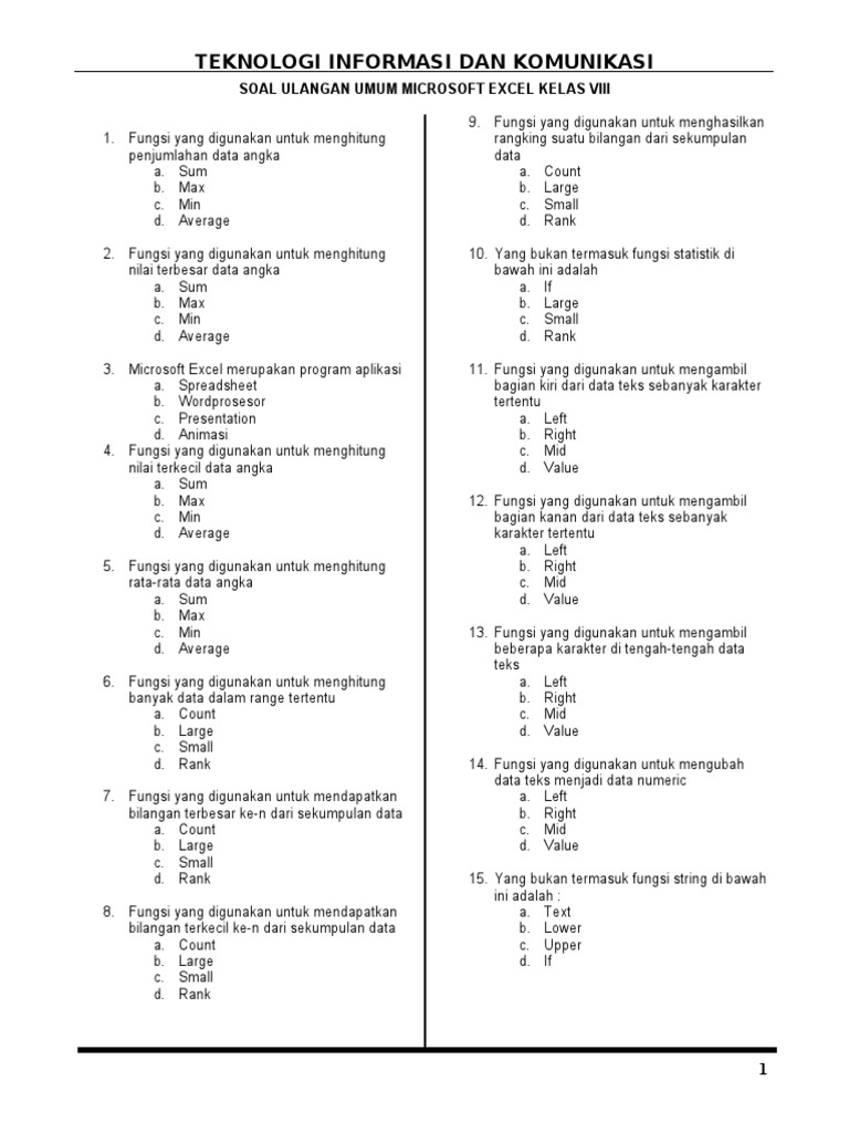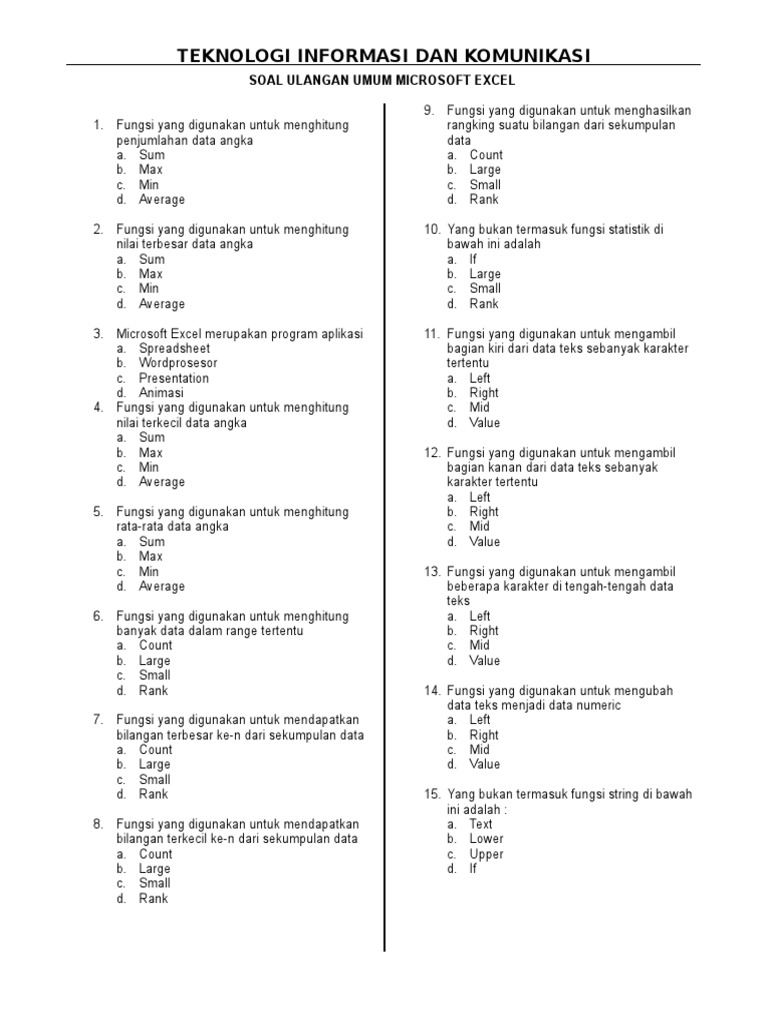 Dibawah Ini Yang Bukan Termasuk Fungsi Statistik Adalah. Soal ujian dibawah ini asli didapat dari pengalaman admin melaksanakan UTS UAS HER dan Her Khusus di kampus Nuri. Max D if E min KUNCI.