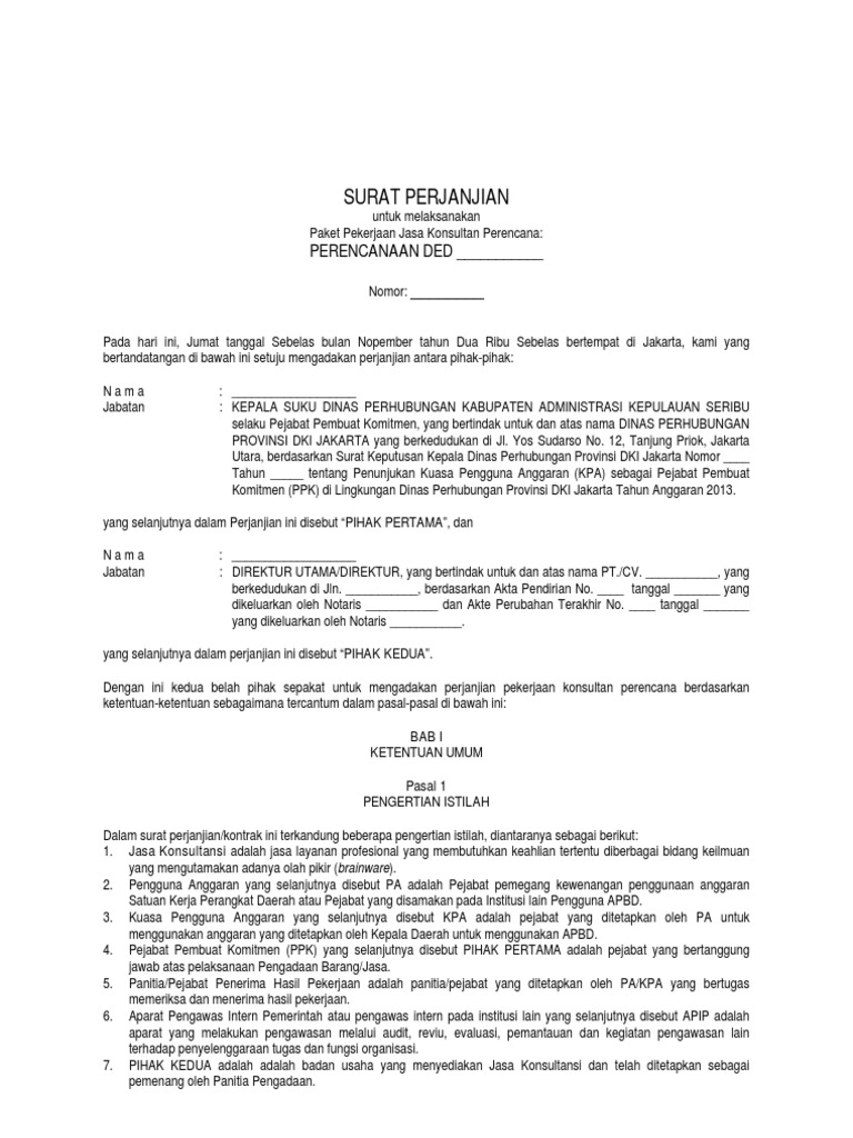 Doc Surat Perjanjian Kerja Kontrak Kerja Jasa Konsultansi Surat Perjanjian Pelaksanaan Pekerjaan Eman Abdurachman Academia Edu