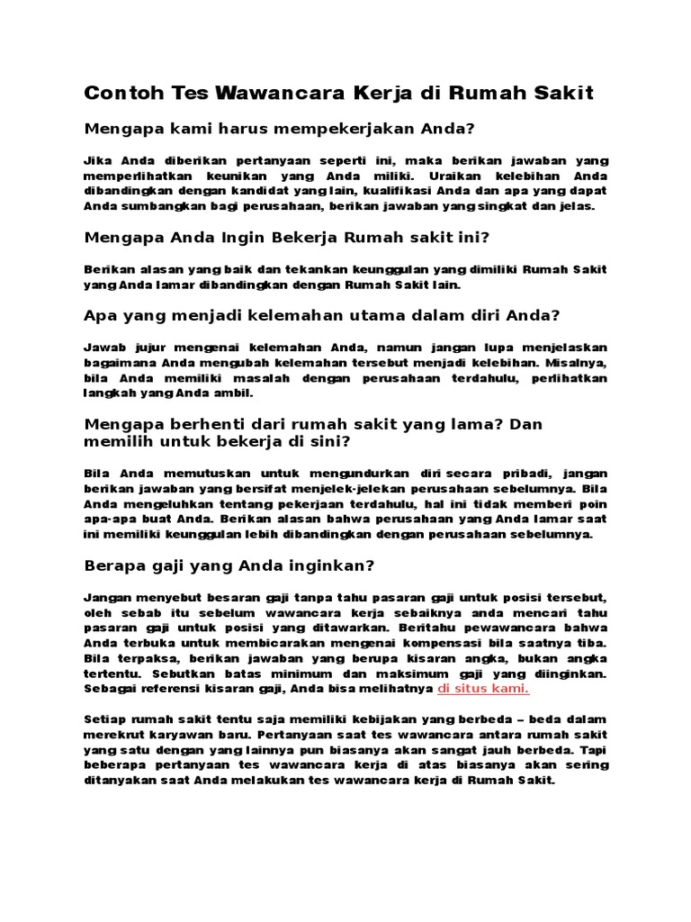 Contoh Tes Wawancara Kerja Di Rumah Sakit Doc